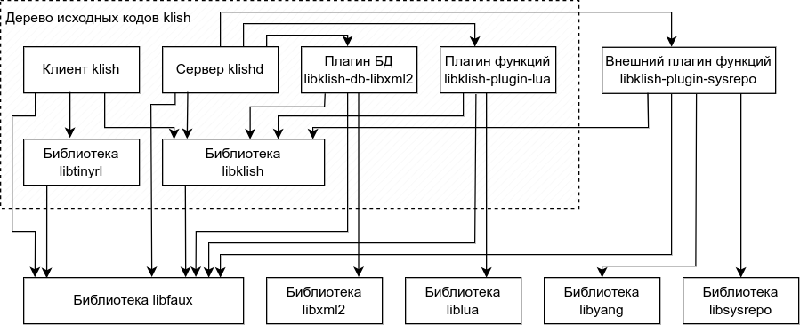 Кроме этого, плагины klish, о которых будет сказано ниже, могут использовать и другие библиотеки для своей работы.